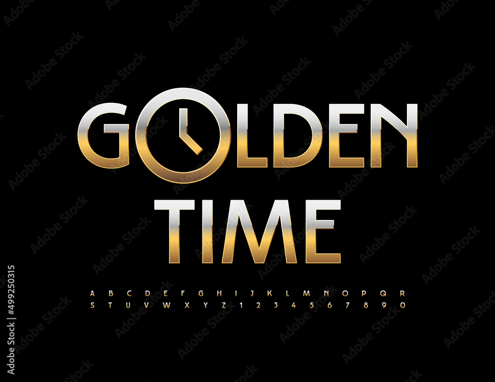 Vector elite template Golden Time with metallic Font Elegant Alphabet