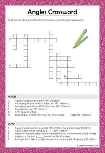 Maths Literacy Puzzle Angles Crossword Teaching Resources