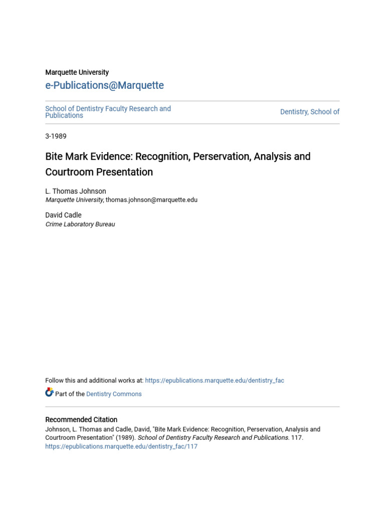 Bite Mark Evidence Recognition Perservation Analysis and Court PDF