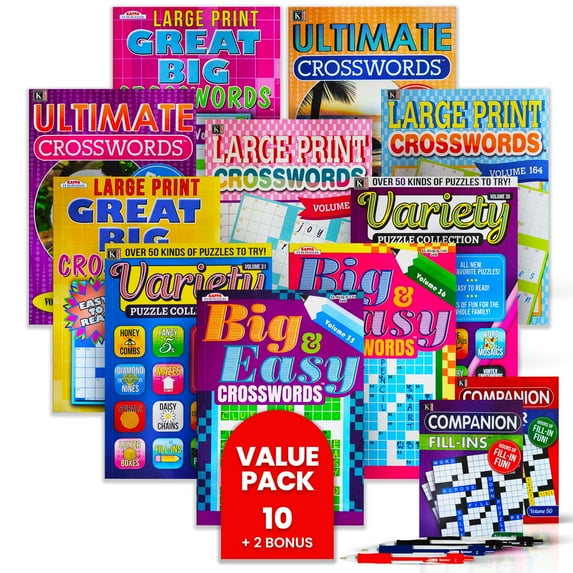 10 Pack Large Print Crossword Puzzles for Seniors Plus 2 Fill In Puzzle