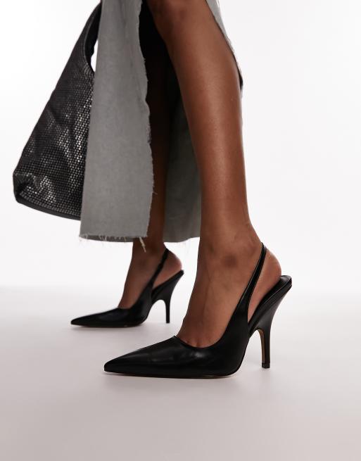 Topshop Eliza sling back heeled court shoe in black ASOS