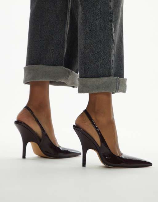 Topshop Emma heeled sling back court shoe in plum ASOS