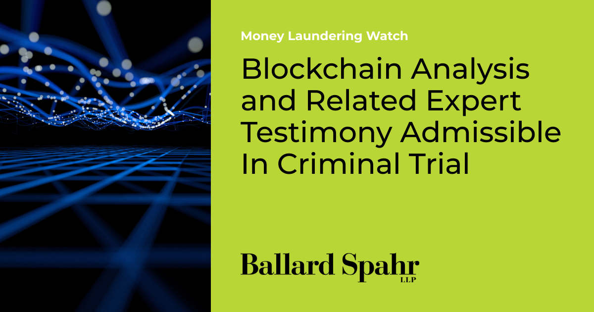 Blockchain Analysis and Related Expert Testimony Admissible In Criminal