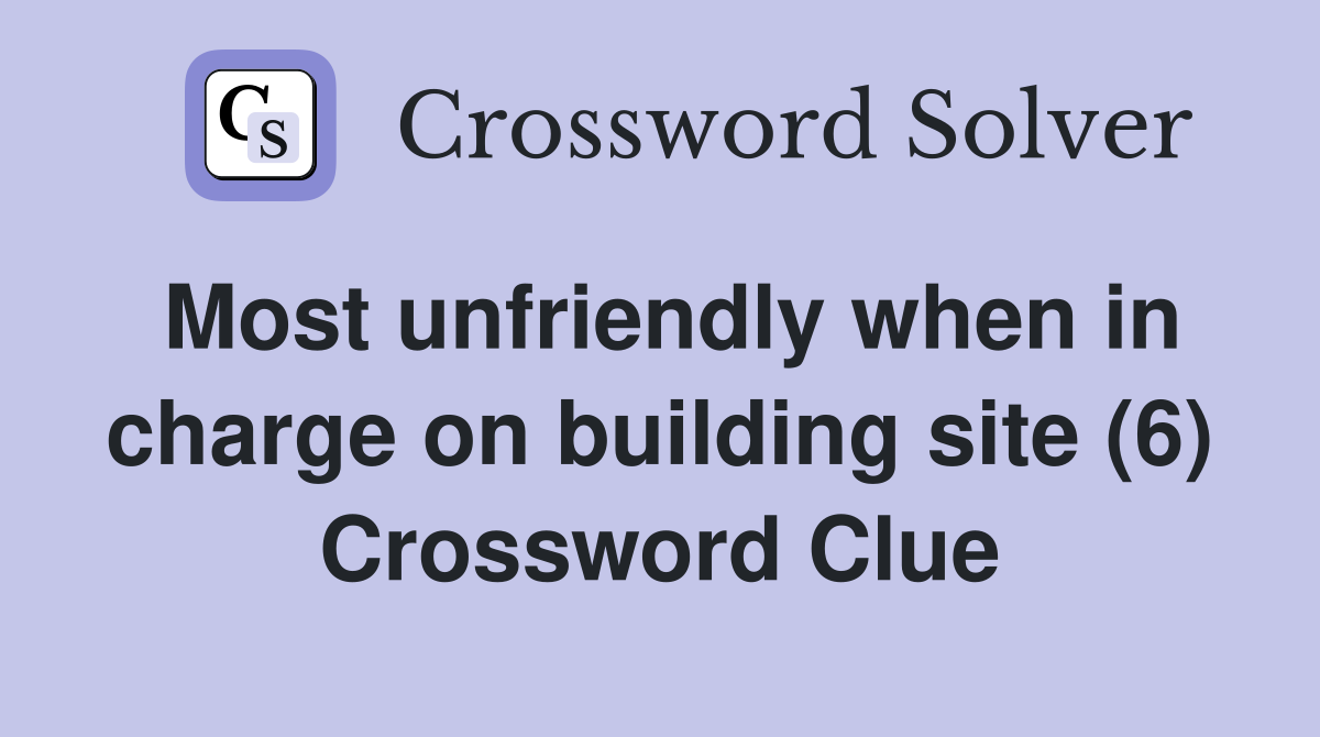 Most unfriendly when in charge on building site (6) Crossword Clue