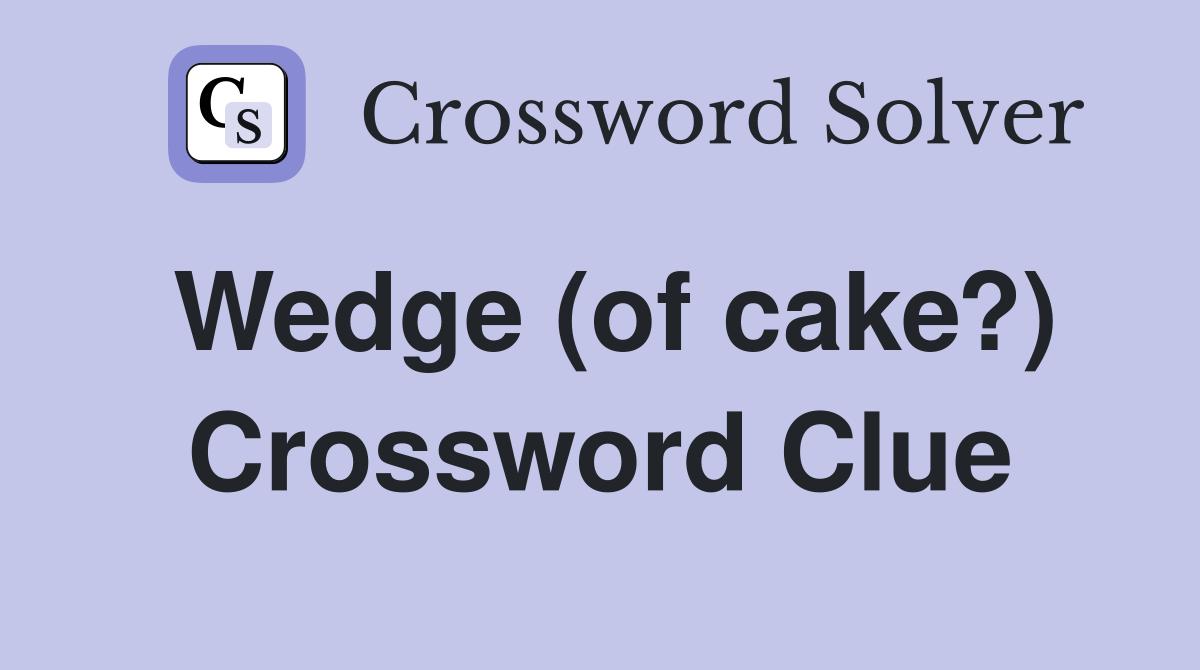 Wedge (of cake?) Crossword Clue Answers Crossword Solver