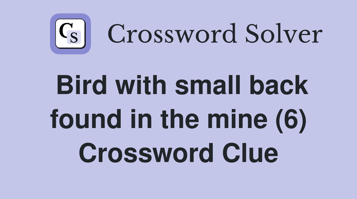 Bird with small back found in the mine (6) Crossword Clue Answers