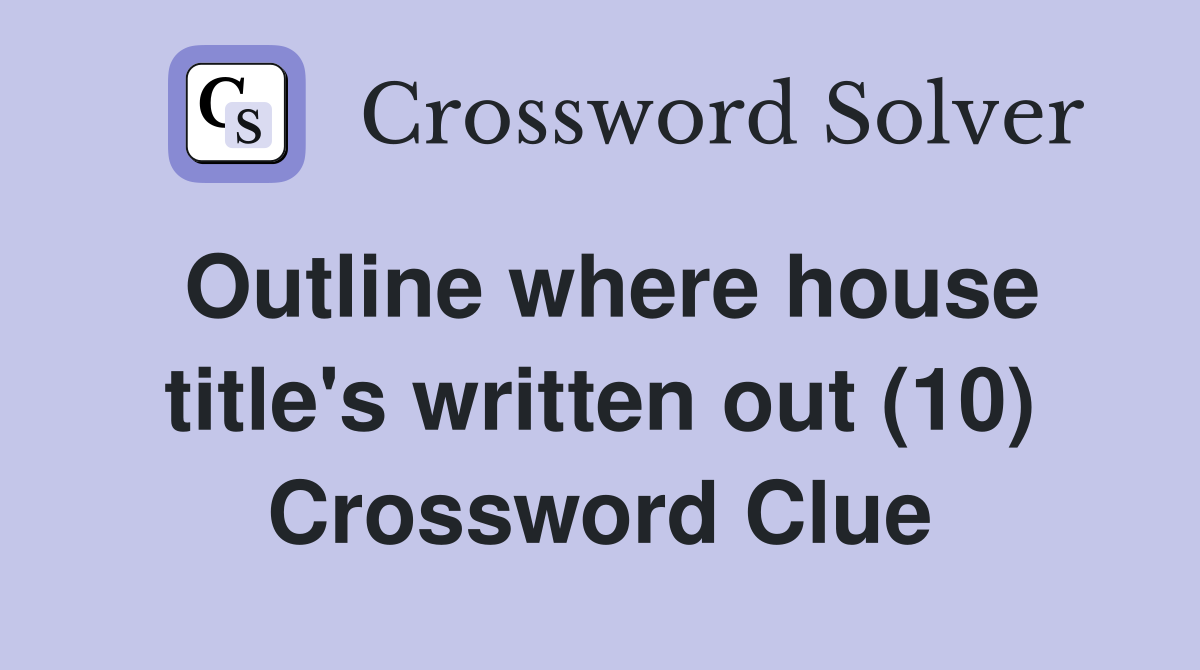 Outline where house title #39 s written out (10) Crossword Clue Answers