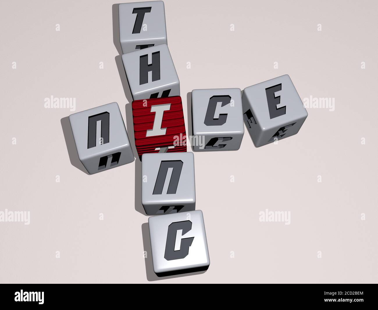 nice thing crossword by cubic dice letters 3D illustration Stock Photo