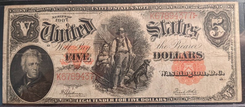 Circulated 1907 Woodchopper Five Dollar Large Note One Dollar Etsy