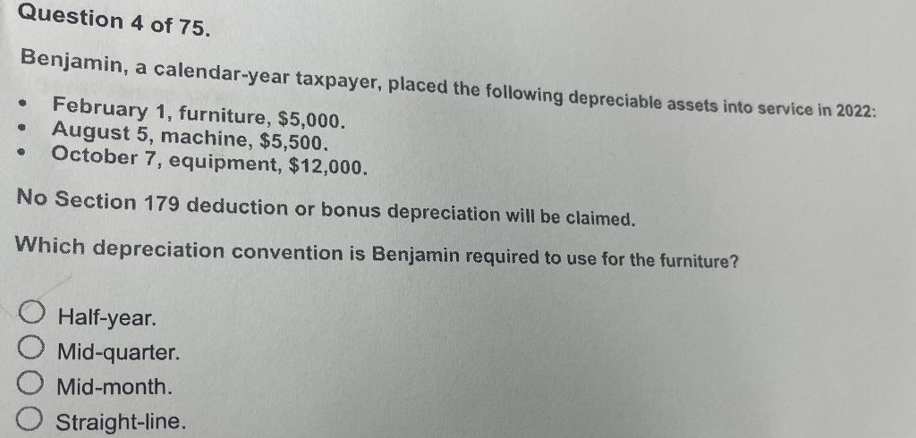Solved Benjamin a calendar year taxpayer placed the Chegg com