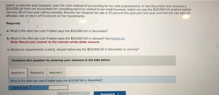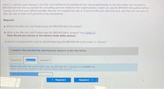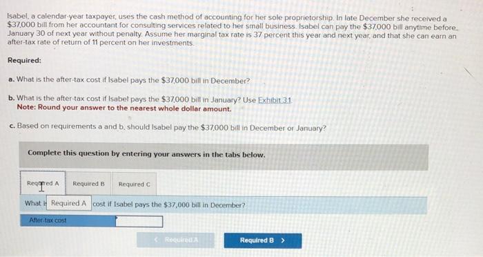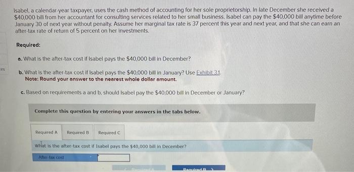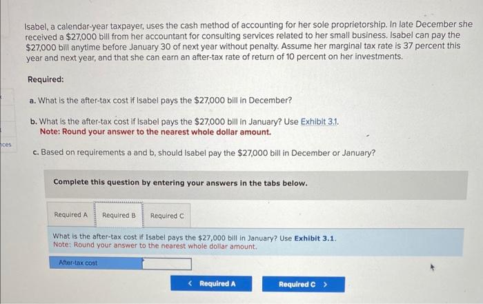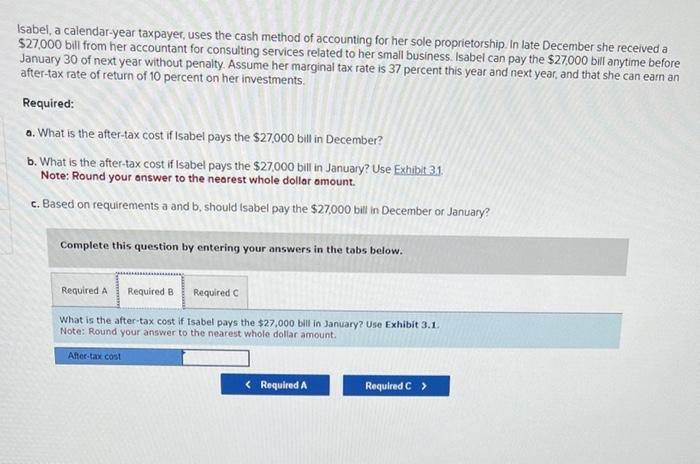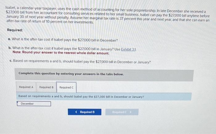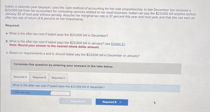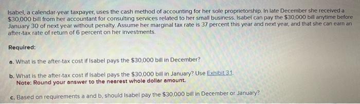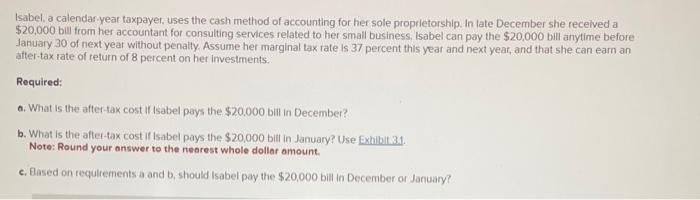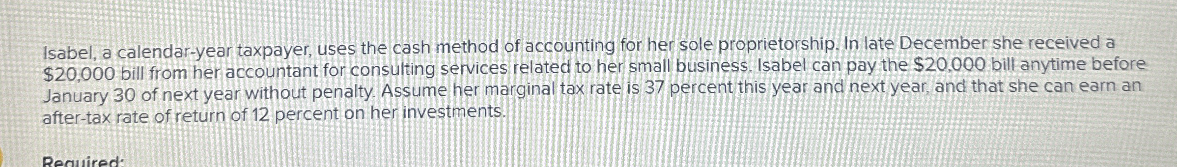 Solved Isabel a calendar year taxpayer uses the cash Chegg com