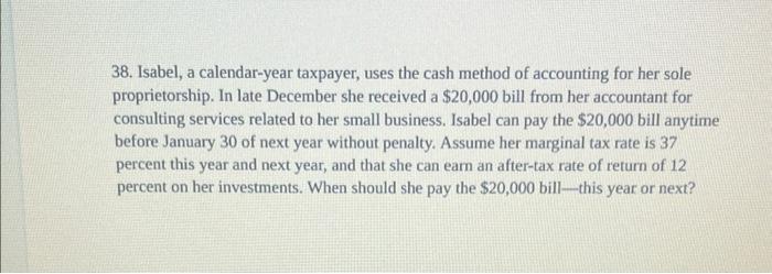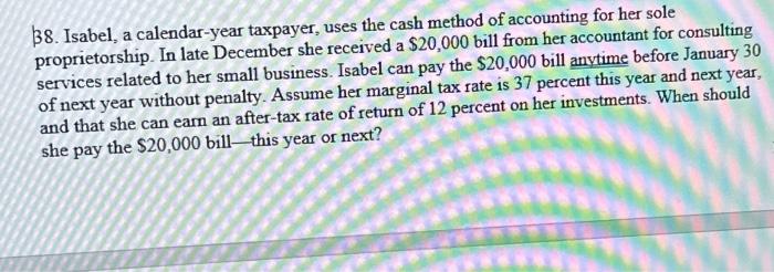 Solved 38 Isabel a calendar year taxpayer uses the cash Chegg com