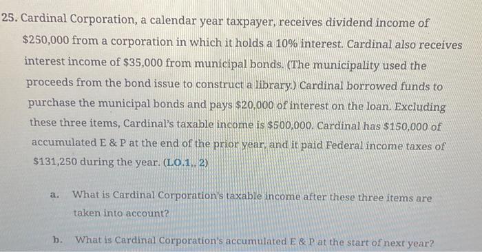 Solved Cardinal Corporation a calendar year taxpayer Chegg com