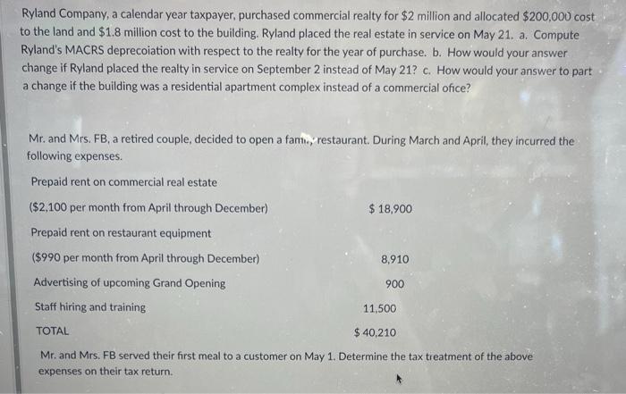Solved Ryland Company a calendar year taxpayer purchased Chegg com