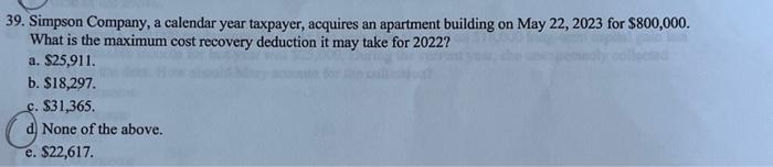 Solved 39 Simpson Company a calendar year taxpayer Chegg com