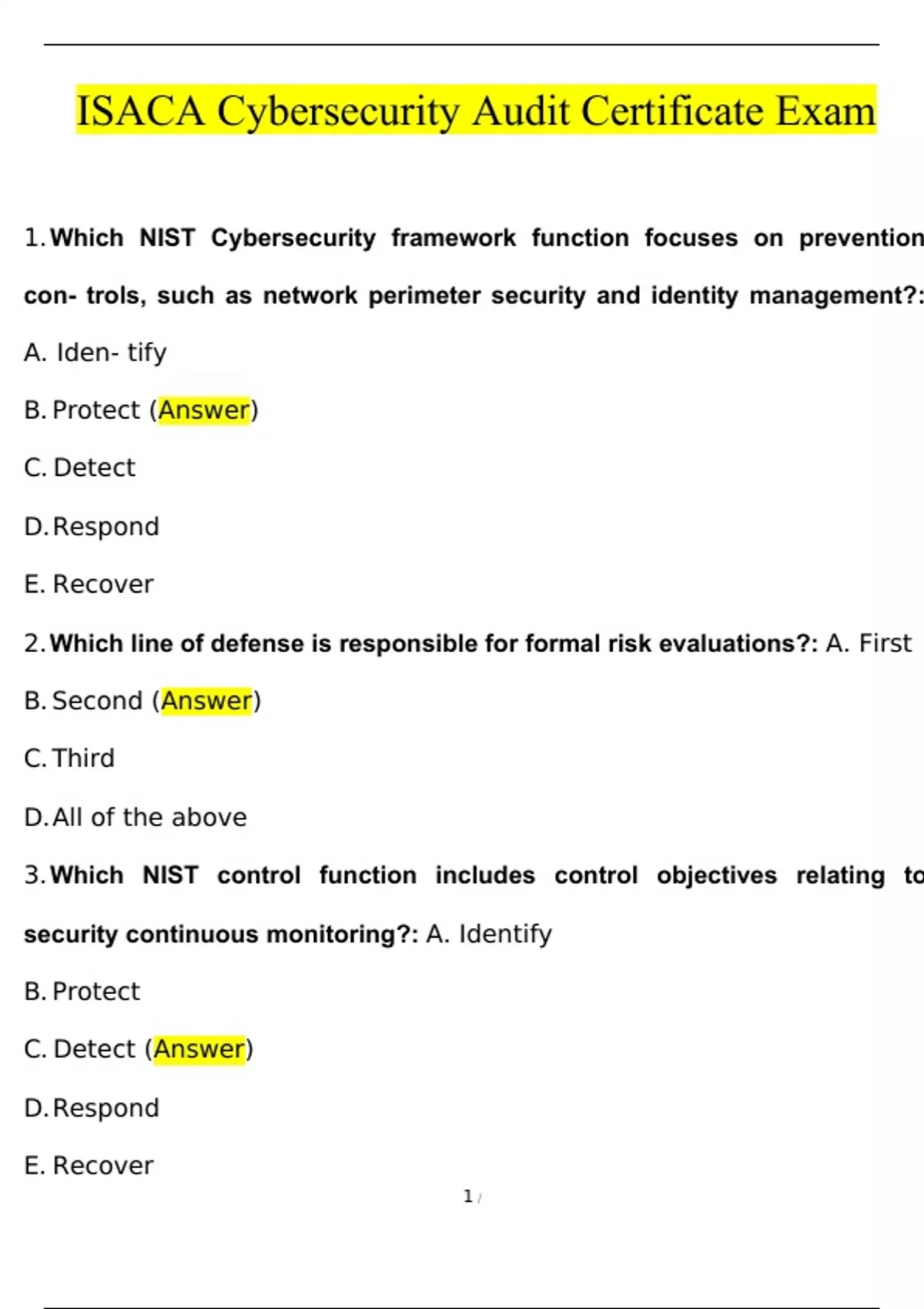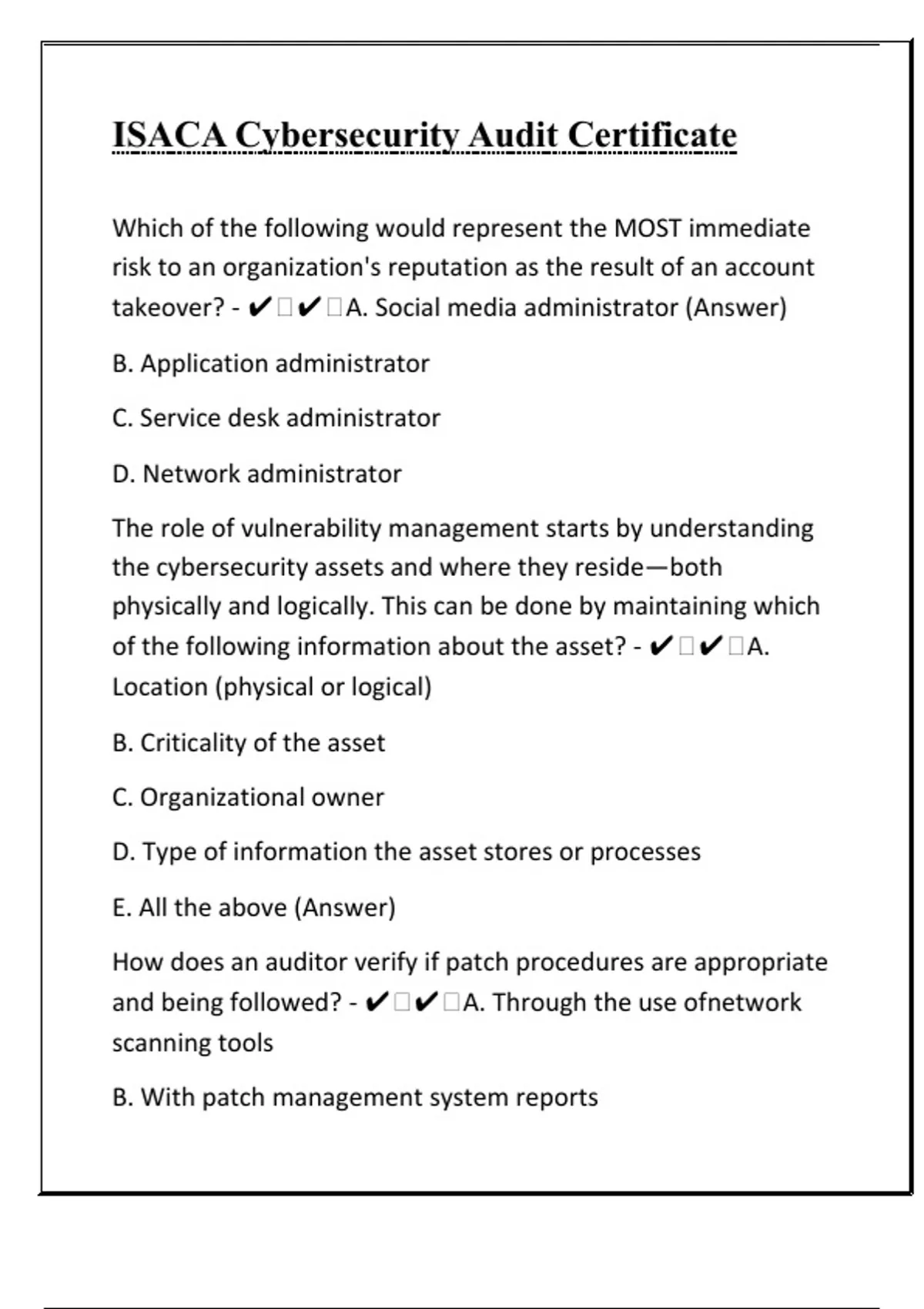 ISACA Cybersecurity Audit Certificate Questions And Answers ISACA