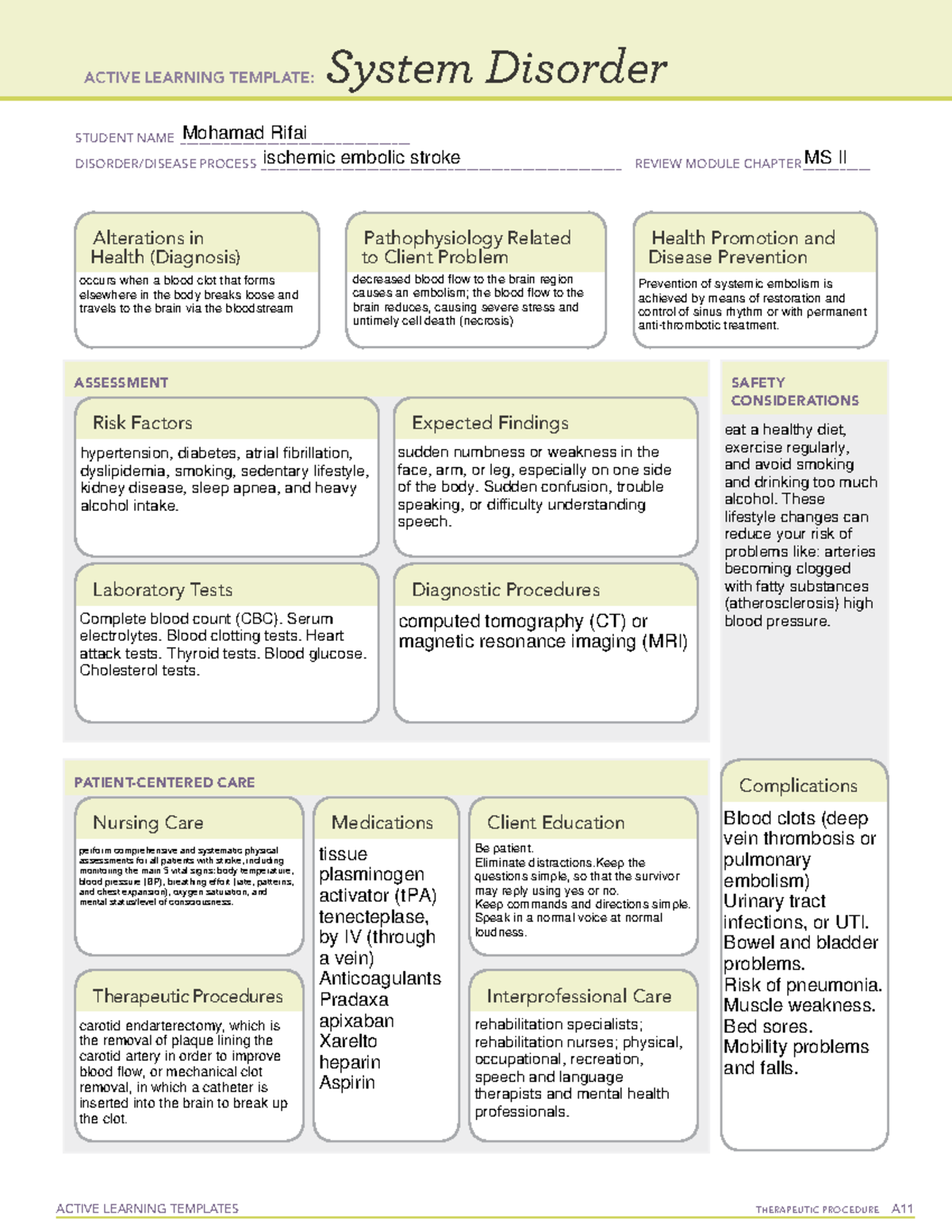 ALT System Disorder Ischemic Stroke pdf ACTIVE LEARNING TEMPLATE