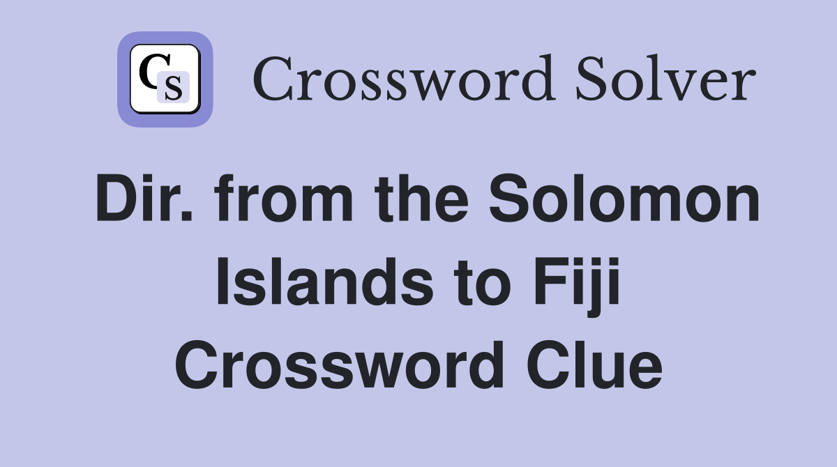 Dir from the Solomon Islands to Fiji Crossword Clue Answers