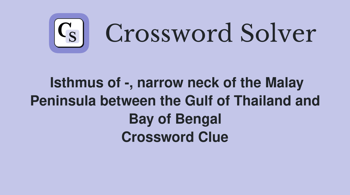 Isthmus of narrow neck of the Malay Peninsula between the Gulf of