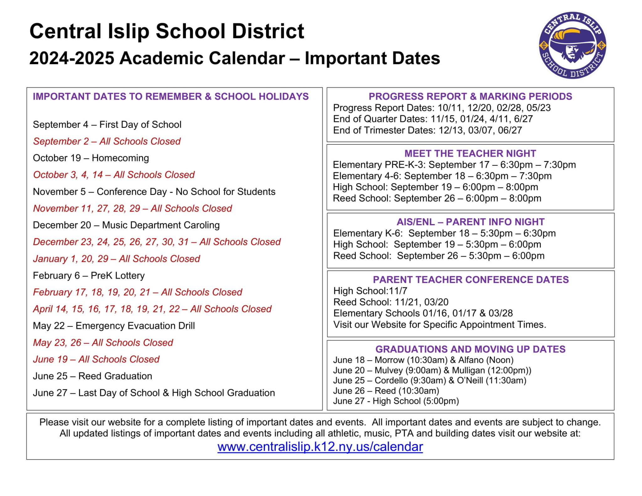 Islip School District 📅 Islip Schools 2025 26 Calendar 📅 We re