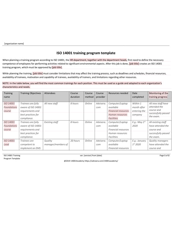 ISO 14001 Free Downloadable Document Templates 14001Academy