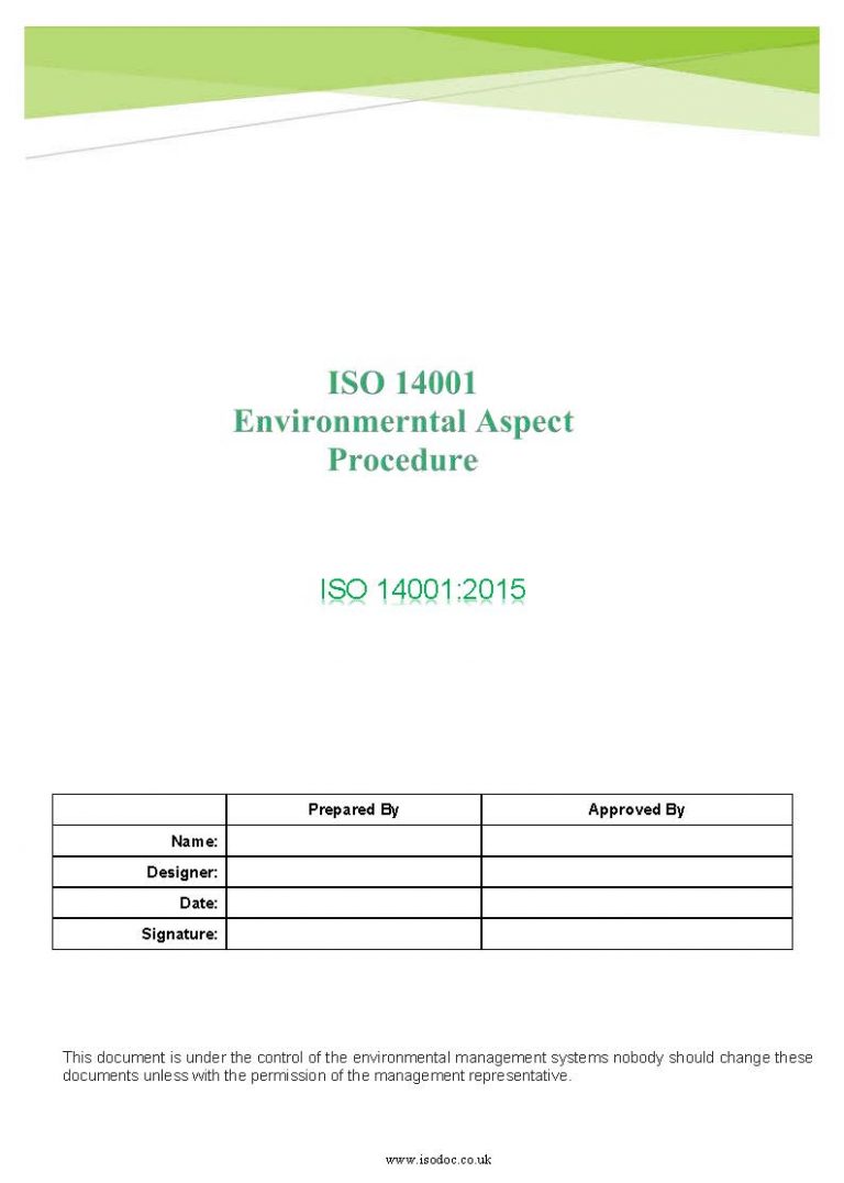 ISO 14001 Environmental Aspect Procedure ISODOC Documentation Toolkit