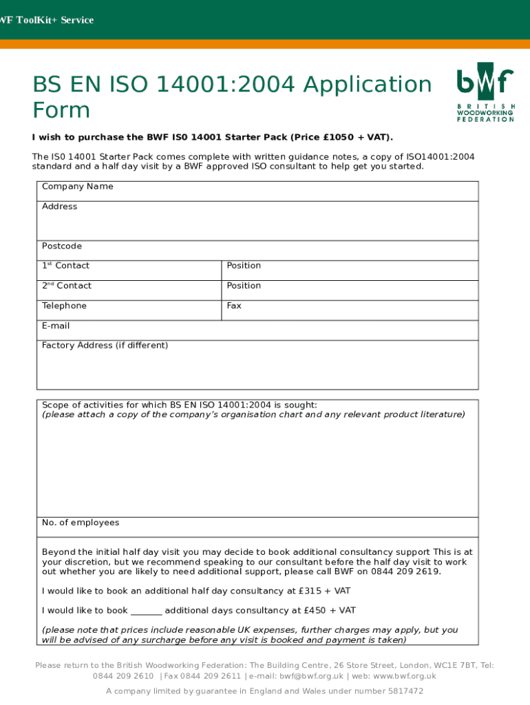 ISO 14001:2004 Environment Management System: ISO 14001 Template