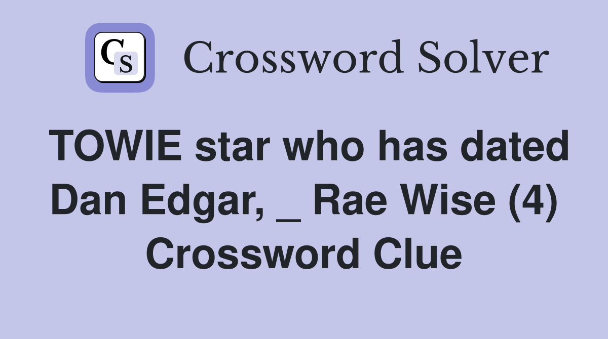 TOWIE star who has dated Dan Edgar Rae Wise (4) Crossword Clue