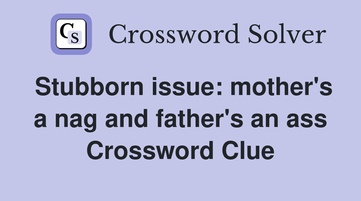 Stubborn issue: mother #39 s a nag and father #39 s anCrossword Clue