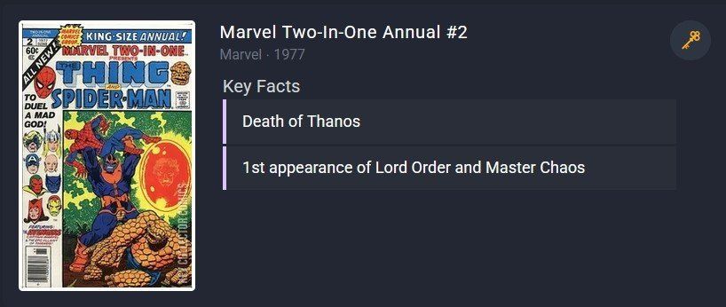 DEATH THANOS 🔑 KEY ISSUE MARVEL TWO IN ONE ANNUAL #2 1977 (Gebraucht