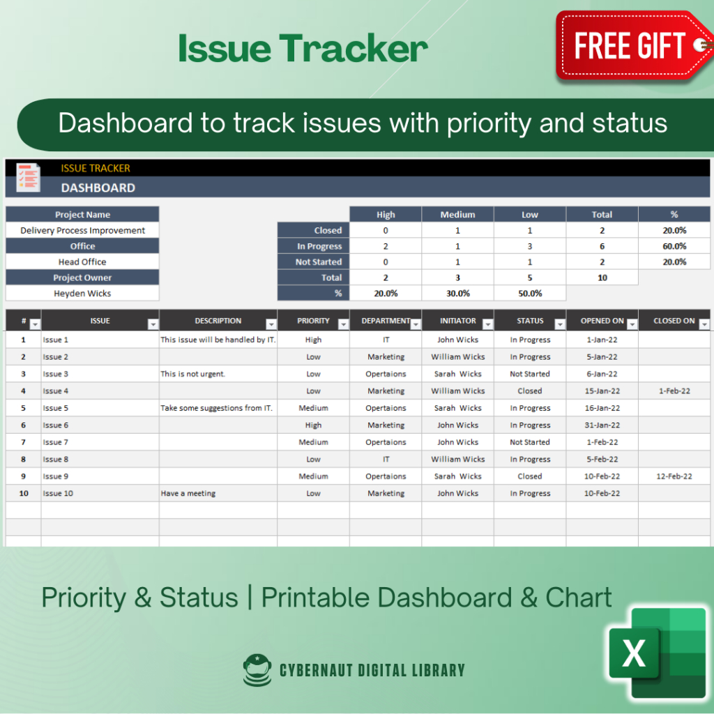 Excel Template Issue Tracker Template for Excel (Free 12 in 1 Bundle