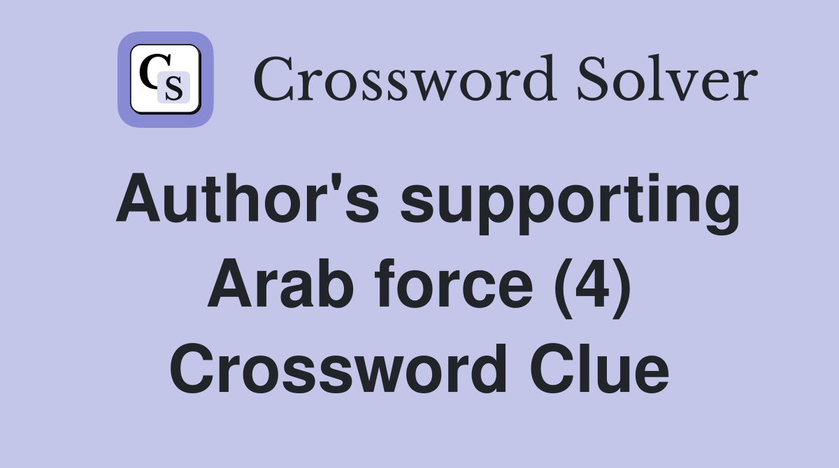 Author #39 s supporting Arab force (4) Crossword Clue Answers Crossword