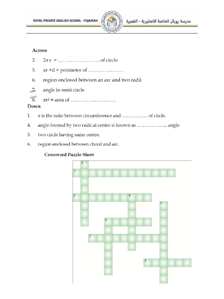 Circles Vocabulary Activity Crossword Puzzle by Infinity Math Creations