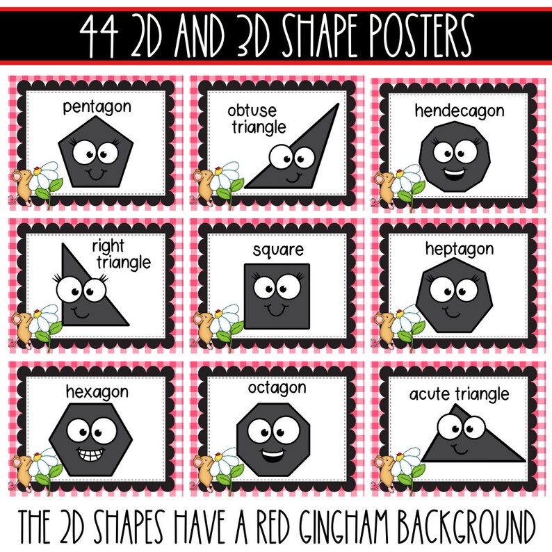 2D and 3D Shape Posters and Shape Mats EDITABLE Berry Sweet Theme Etsy