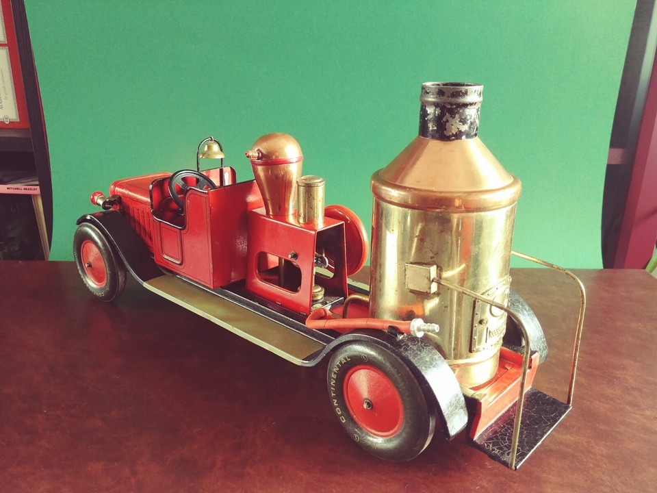 SIREN FIRE CHIEF PRESSED STEEL WIND UP FIRE TRUCK Kidd Family Auctions