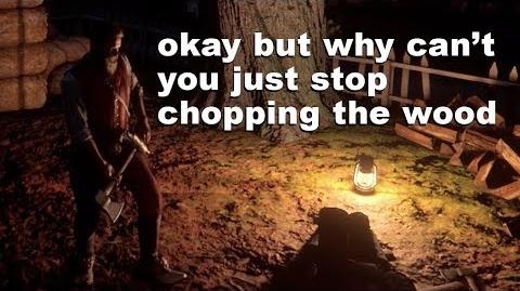 The Axe Stuck In The Chopping Block With Firewood On Background Stock
