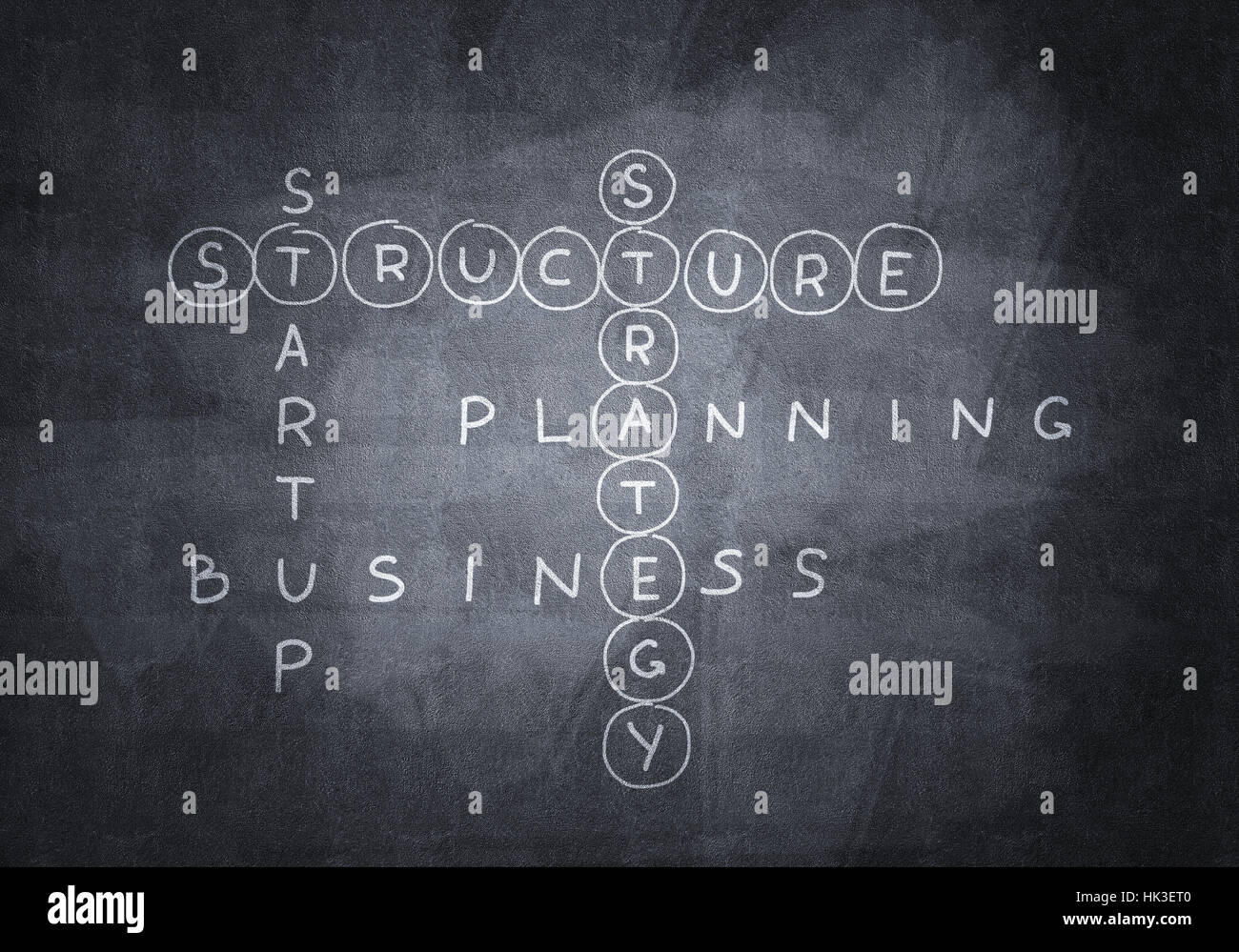 Studying concept with crossword drawn with chalk on blackboard Stock