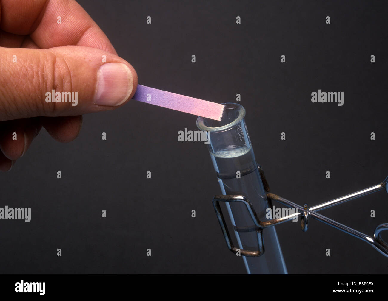 Blue litmus paper turns red above acid in test tube Stock Photo Alamy