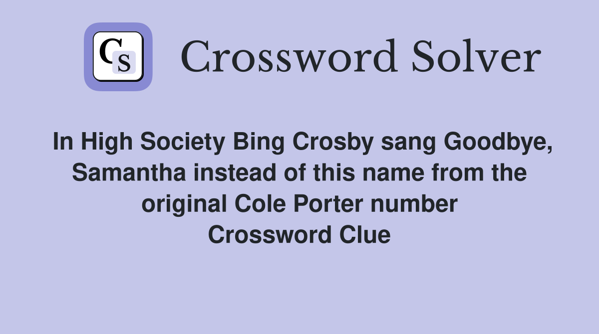 In High Society Bing Crosby sang Goodbye Samantha instead of this name