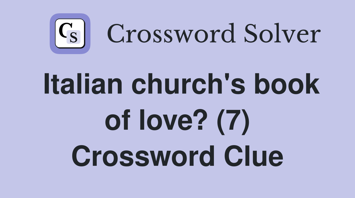 Italian church #39 s book of love? (7) Crossword Clue Answers Crossword
