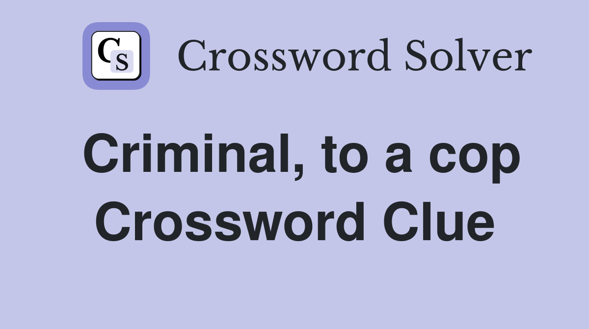 Criminal to a cop Crossword Clue Answers Crossword Solver