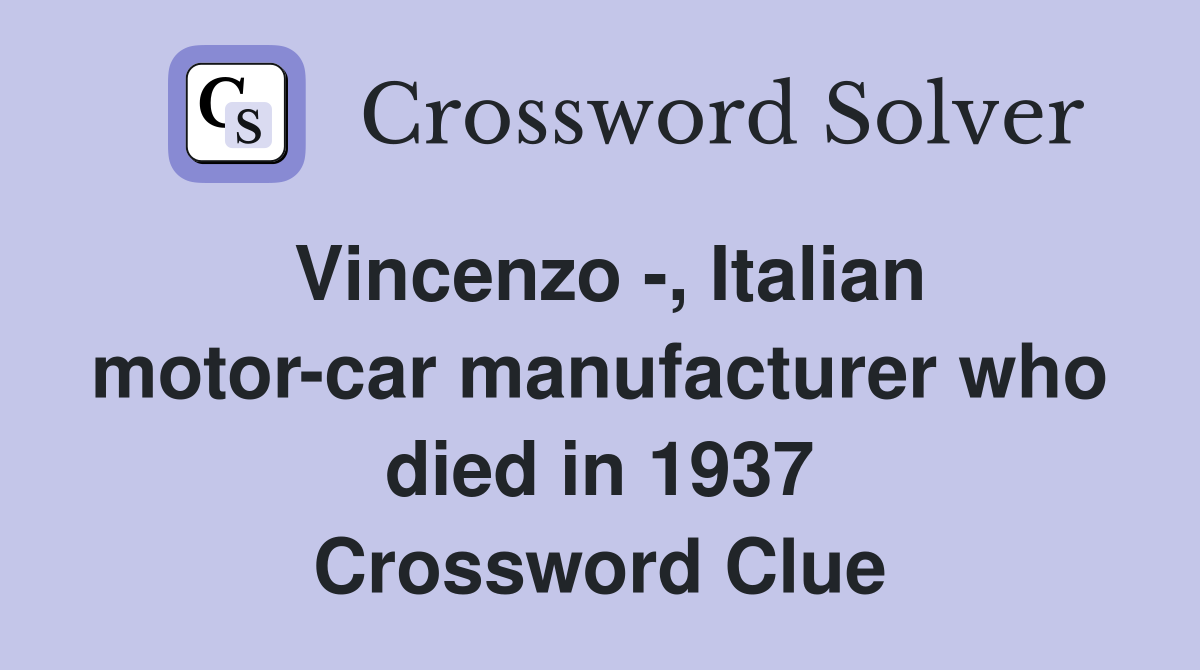Vincenzo Italian motor car manufacturer who died in 1937 Crossword