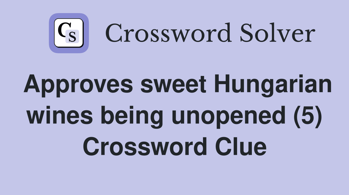 Approves sweet Hungarian wines being unopened (5) Crossword Clue