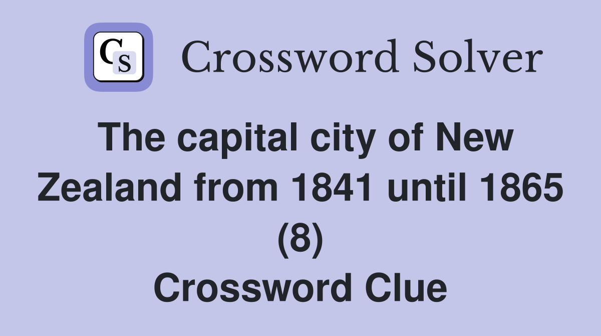 The capital city of New Zealand from 1841 until 1865 (8) Crossword