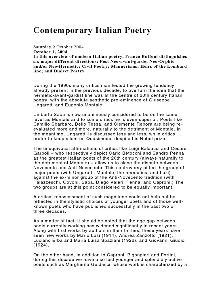 Contemporary Italian Poetry PDF Poetry Italian Writers