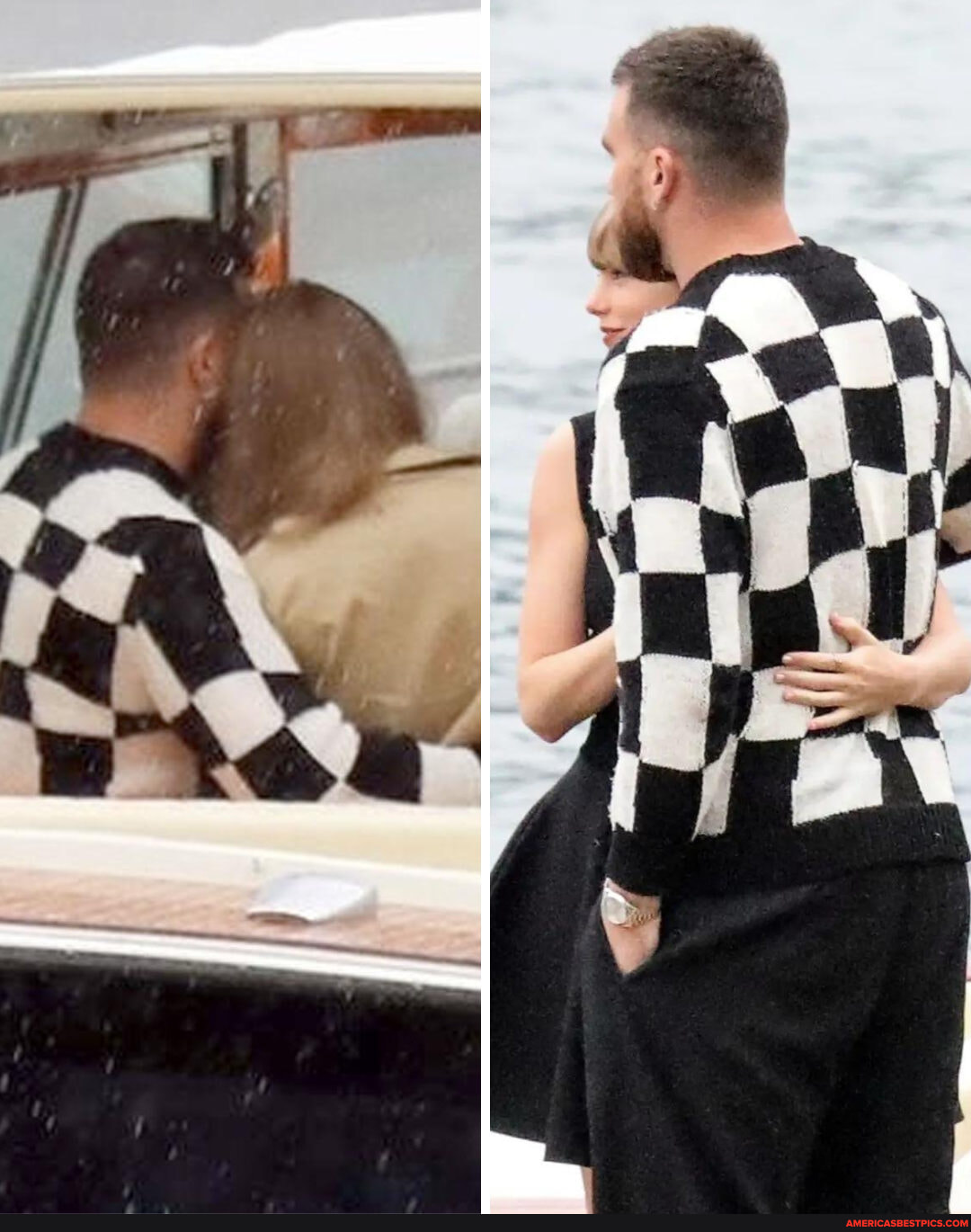 TaylorSwift and TravisKelce were photographed on a romantic boat ride