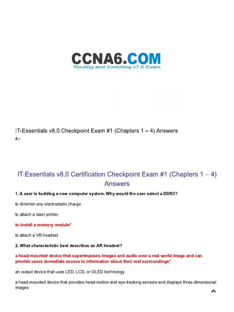 IT Essentials v8 0 Checkpoint Exam #1 (Chapters 1 4) Answers CCNA6