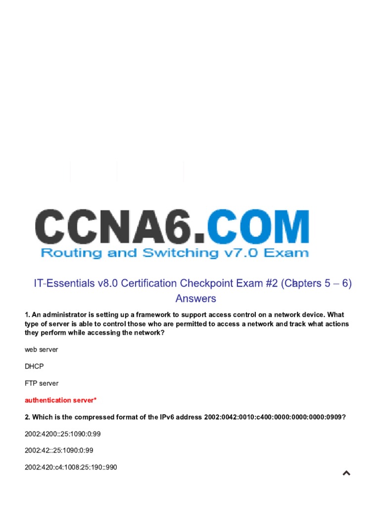 ITE v7 0 Certification Checkpoint Exam #2 Chapters 5 6 Exam Answers