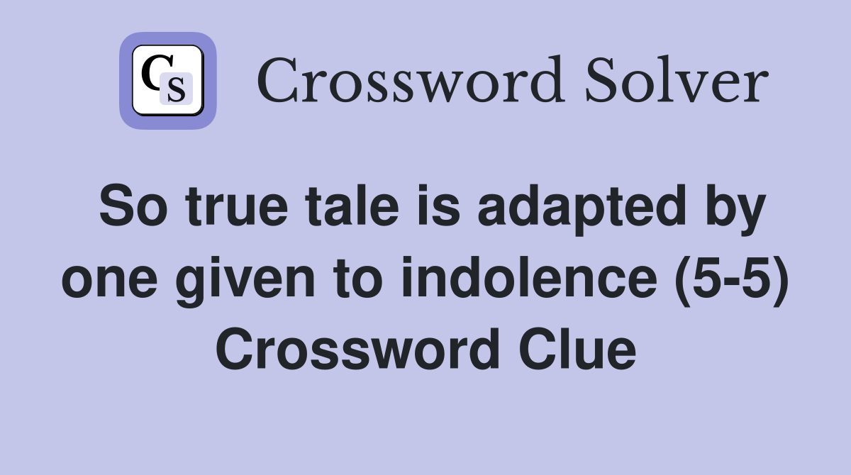 So true tale is adapted by one given to indolence (5 5) Crossword