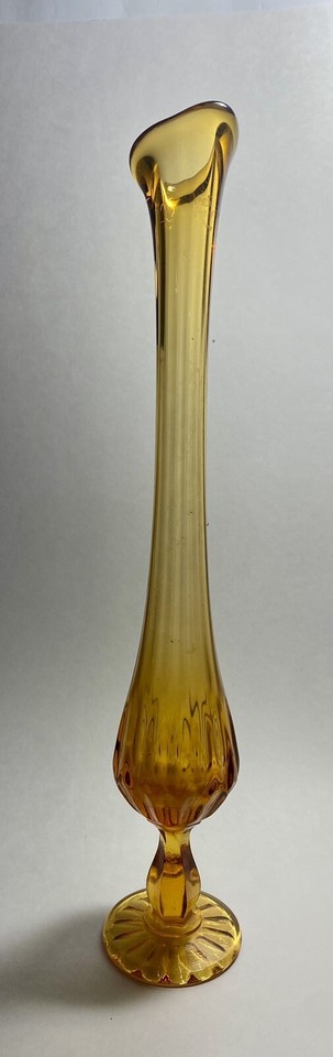 Amber Glass Swung Stretched Thumbprint Bud Vase 15 Petals eBay